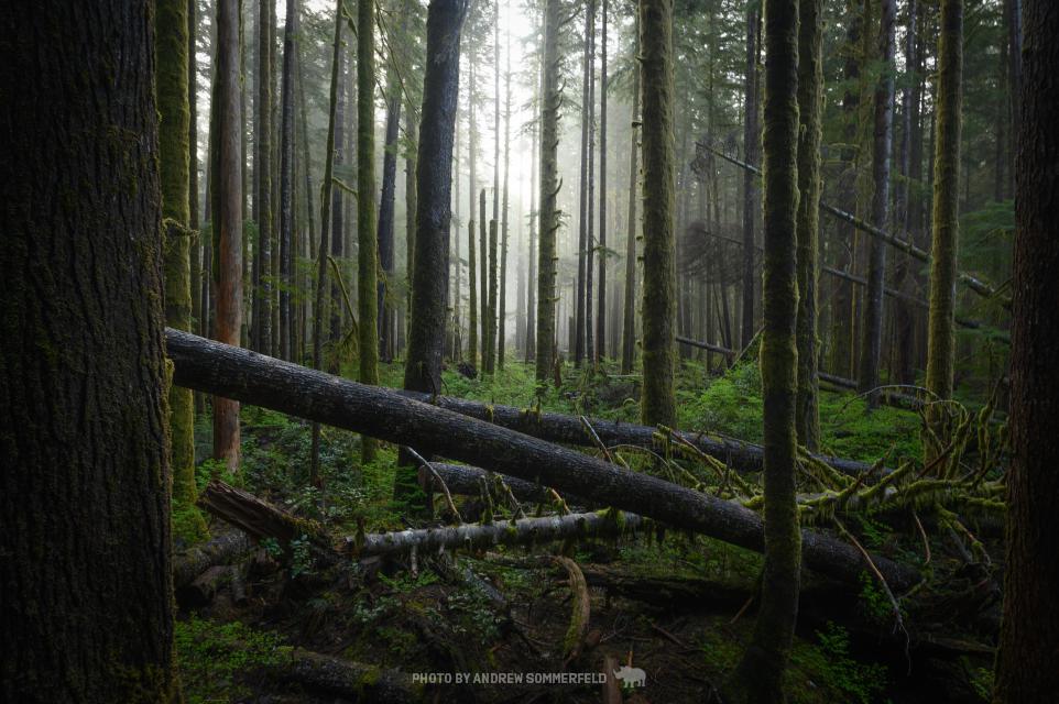 Foggy scenery on display in Avatar Grove on Vancouver Island, BC.