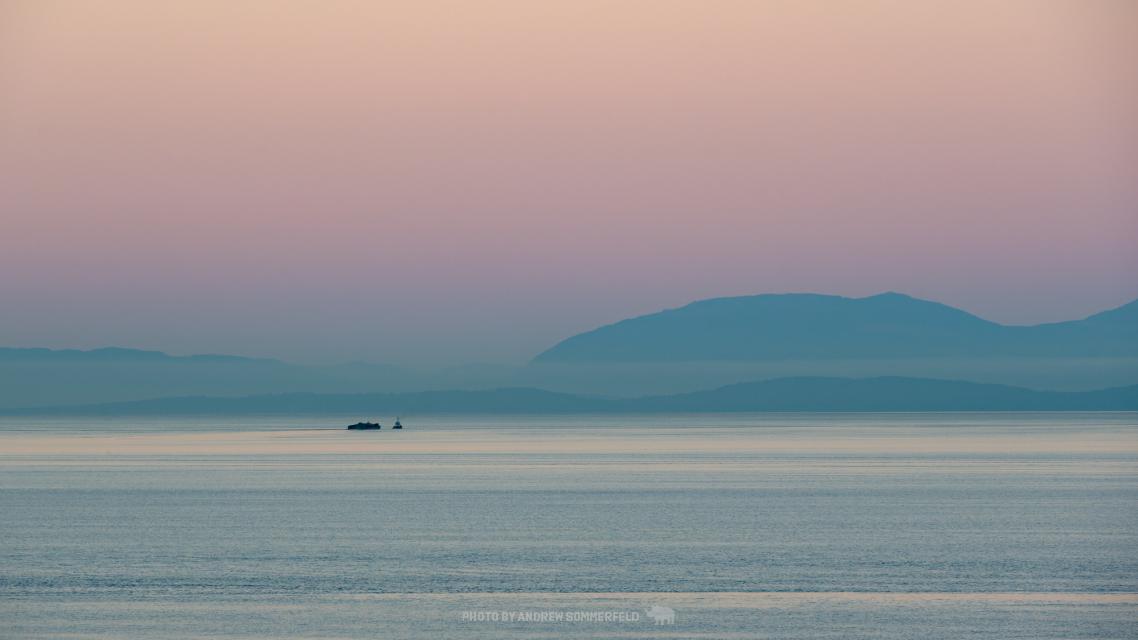 A minimalist take on an early morning tugboat, as seen from Lighthouse Park.